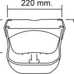 Bebedouro em alumínio pintado com abraçadeira, capacidade para água de 1,15 litros. Conexão de 1/2″ e entrada de água inferior. Boia grande. Nível de água constante.