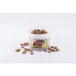 Composição: Milho, trigo, cevada, farelo de trigo, gordura de palma, soro de leite em pó, mistura de frutas silvestres, beterraba em pó, carbonato de cálcio, cloreto de sódio.