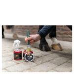 BR Hoof Balm, com óleo de folha de louro, estimula o crescimento saudável do casco e melhora a qualidade do casco. Ele mantém a elasticidade e a resiliência do casco saudável e reduz o risco de ressecamento e rachaduras, além de dar aos cascos um brilho brilhante, graças ao glitter adicionado. O bálsamo tem um aroma atraente de framboesa e é adequado para todos os tipos e cores de casco e pode ser usado o ano todo.