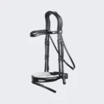 A cabeçada inglesa E157 com elevação tripla é finamente decorada e feita de couro europeu de alta qualidade. a cachaceira de forma anatômica, tem uma superfície ampla e um enchimento extra em couro macio para reduzir a pressão na área mais sensível da cabeça do cavalo. A E157 vem com 2 elegantes faixas frontais: uma é embelezada por uma fileira de pedras Swarovski e a outra é em couro envernizado. A focinheira é em couro envernizado com preenchimento frontal branco e possui um fecho sueco e uma dupla focinheira.