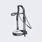 A cabeçada E158 tripla levantada é finamente decorada e feita de couro europeu de alta qualidade. A cachaceira de forma anatómica tem uma superfície ampla e um enchimento extra em couro macio para reduzir a pressão na área mais sensível da cabeça do cavalo. A cabeçada E158 vem com 2 elegantes faixas frontais: uma é embelezada por uma fileira de pedras Swarovski e a outra é em couro envernizado. A focinheira é em couro envernizado com acolchoamento frontal branco e apresenta um fecho sueco. As rédeas correspondentes 3E136/3E138 estão incluídas.