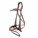 A equipa da TRUST desenvolveu a cabeçada TRUST Falsterbo com o objetivo de criar uma cabeçada adequada para qualquer cavalo. Esta cabeçada pode ser utilizada de diversas formas, com ou sem travão. Prefere trabalhar sem freio? Assim, escolha uma puxada lateral ou cruzada. A focinheira tem um design anatómico e é quadrada e elevada, o que significa que é ligeiramente elevada para garantir que fica confortável no focinho do cavalo. A peça de cabeça tem um formato anatómico e um corte para trás para permitir mais liberdade nas orelhas. O acolchoamento é macio, mas não demasiado grosso, para que o contacto direto com o cavalo seja mantido. A TRUST Falsterbo é feita de pele europeia de flor integral da mais alta qualidade, que é macia e flexível e fica ainda melhor com o tempo. Graças à sua qualidade superior, a TRUST Falsterbo foi construída para durar. Todos os aspetos do design têm em conta a anatomia do cavalo moderno. Estas características garantem que a TRUST Falsterbo oferece um ajuste perfeito. • A TRUST Falsterbo apresenta um subtil logótipo TRUST na peça de cabeça e na testa. • O TRUST Falsterbo é embalado em duas toalhas exclusivas. • O TRUST Falsterbo está disponível em preto e castanho com fivelas prateadas ou castanhas com fivelas douradas. • Todas as fivelas são banhadas a latão e níquel para evitar a ferrugem.