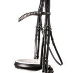 A cabeçada dupla TRUST Wellington é única. Esta elegante cabeçada tem um acabamento e ajuste perfeitos. A TRUST Wellington possui uma testa anatómica reforçada com nylon para evitar que estique. O acolchoamento da focinheira estende-se para além da focinheira, de modo a que as fivelas nunca toquem na cabeça do cavalo. A testa apresenta pedras Stellux™ da mais alta qualidade, conferindo-lhe um aspeto elegante. As pedras são cravadas profundamente para que não caiam. A cabeçada tem um formato anatómico e um corte posterior para permitir mais liberdade nas orelhas. O acolchoamento é macio, mas não demasiado grosso, para que o contacto direto com o cavalo seja mantido. A TRUST Wellington é essencial para todo o cavaleiro de dressage! A TRUST Wellington é fabricada em pele integral europeia da mais alta qualidade, que é macia e flexível e fica ainda melhor com o tempo. Graças à sua qualidade superior, a TRUST Wellington foi construída para durar. Todos os aspetos do design têm em conta a anatomia do cavalo moderno. Estas características garantem que a TRUST Wellington oferece um ajuste perfeito. • O TRUST Wellington apresenta um logótipo TRUST discreto na parte da cabeça e na testa. • O TRUST Wellington é embalado em duas toalhas exclusivas. • O TRUST Wellington está disponível em preto com fivelas prateadas ou com uma tira nasal branca acolchoada. • Todas as fivelas são banhadas a latão e níquel para evitar a ferrugem.