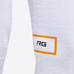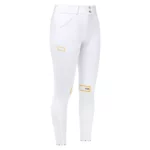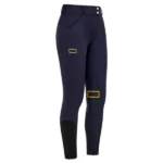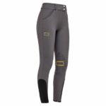 • tiras de silicone no joelho coordenadas por cores dão ao cavaleiro uma fixação ideal na sela