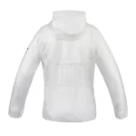 Casaco de chuva com detalhes estampados com capuz. Transparente, impermeável com costuras seladas. Fecho em cor contrastante. Detalhes estampados na manga esquerda e no peito.