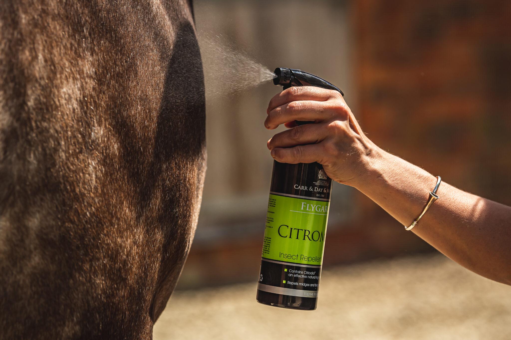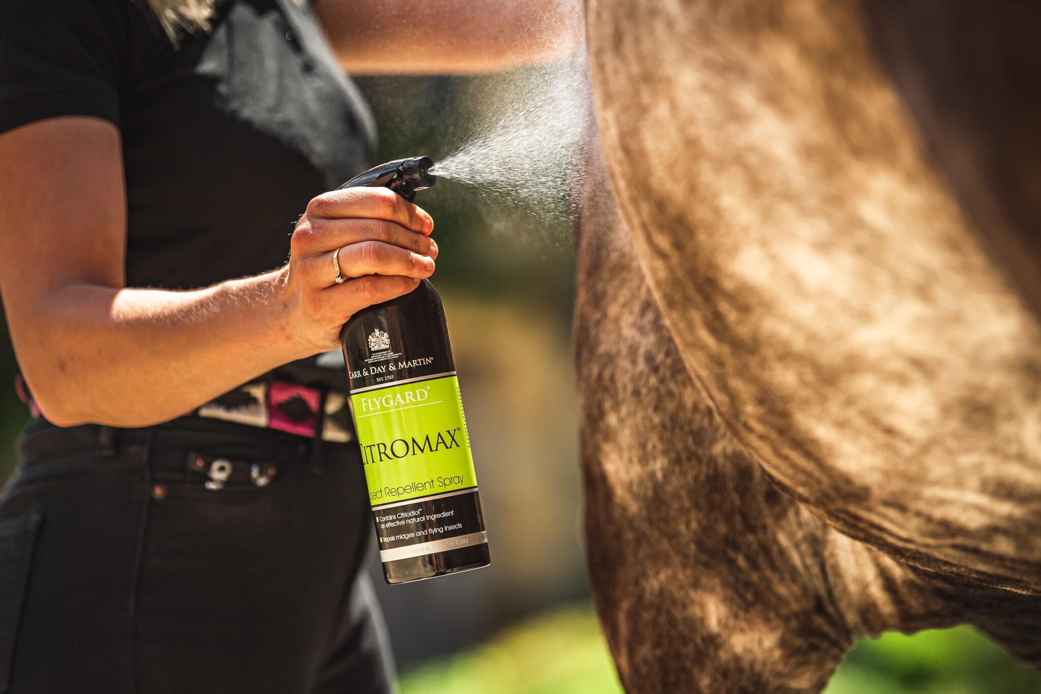 Proporciona proteção imediata e de longa duração contra mosquitos e todos os insetos. Instruções: Pulverizar com 8 a 10 esguichos (cada esguicho liberta 0,6 ml) por metro quadrado de pele do cavalo. Para obter uma maior proteção, utilize duas vezes por dia ou mais, se necessário. Na primeira utilização, testar numa área pequena 24 horas antes de utilizar. Ingredientes ativos: 3,5% m/m de CitriodiolTM (2,24% m/m de P-Mentano-3,8-Diol)