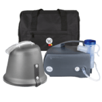 Inalador para o trato respiratório inferior e superior e para inalação profunda de aerossóis medicamentosos no trato respiratório. Adequado para cavalos, manuseio muito eficaz. Inclui máscara/cesta de inalação, nebulizador e bolsa de armazenamento prática. Este dispositivo permite que qualquer medicamento solúvel em água seja transportado diretamente para a superfície dos pulmões. Isso garante uma ação ótima e direta do medicamento! Tamanho das partículas: aprox. 75,74 ± 0,02% na faixa de 0,5 a 5 um. Volume máximo de enchimento do copo de medicamento: 8 ml.
