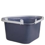 Modelo em plástico, triangular, com rebordo em aço galvanizado e barras anti-desperdício.