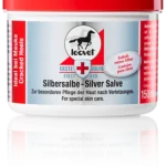 Cuidados especiais com a pele. Silver Salve contém prata pura que, por meio da área superficial aumentada, leva a uma liberação contínua de íons de prata. Isso permite que o efeito anti-séptico da prata se desenvolva. As infecções diminuem, permitindo que a pele se acalme e se regenere. Os óleos vegetais de alta qualidade fornecem hidratação à pele seca e rachada, tornando-a macia. Pode ser usado para apoiar o metacarpo contra umidade e bactérias. Silver Salve pode ser usado em combinação com Leovet Zinc Oxide Spray.