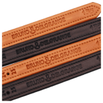 Os loros de Bruno Delgrange são feitos de couro macio com um interior de nylon. Eles são ultra resistentes, não esticáveis e têm orifícios fechados para permitir um ajuste preciso do comprimento. Vendidos como um par.