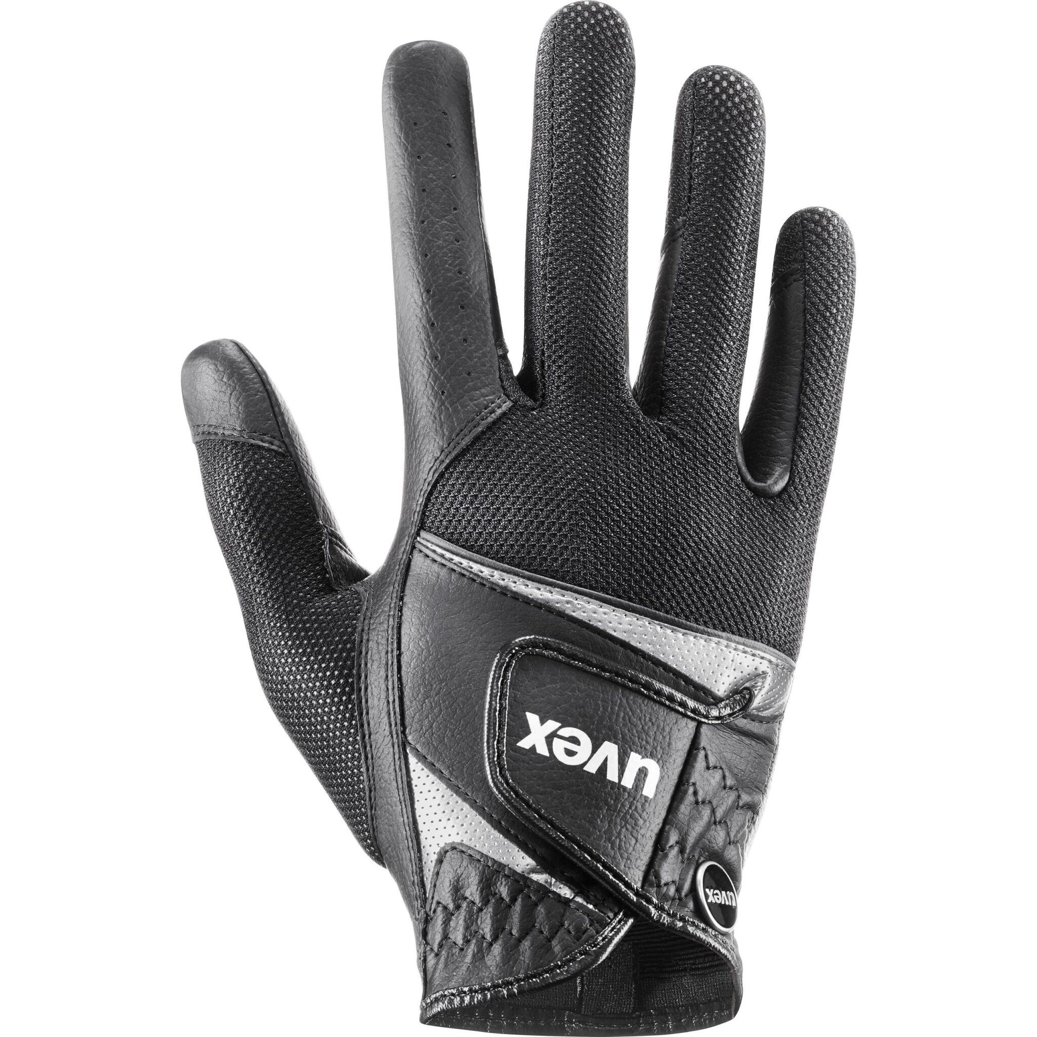 Com uma pegada firme e flexível mesmo em condições de humidade: as luvas de equitação Uvex Sumair são as companhias perfeitas para treinos intensivos quando é necessário o máximo controle. Humidade, rédeas escorregadias, alta intensidade para cavalos e cavaleiros – as luvas Uvex Sumair foram projetadas exatamente para essas condições. O material de poliuretano antiderrapante na palma da mão e especialmente durável, para fornecer máxima aderência e controle sensível das rédeas. O material de malha respirável que cobre a parte externa da mão e do polegar, afasta rapidamente qualquer humidade e garante uma ventilação ideal. Ao mesmo tempo, a composição de materiais altamente funcionais cria um visual único: couro sintético brilhante, poliuretano e malha em uma ampla gama de cores adicionam um fator de alta moda. O detalhe preto e uma linha desportiva fazem destas luvas ícones de estilo. Com um punho curto, a Uvex Sumair é a luva ideal para um desempenho elegante na sela, mesmo em tempo quente.