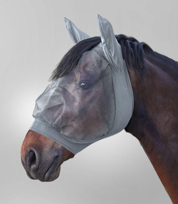 Proteção versátil, confortável e de alta qualidade contra insetos incómodos para olhos e ouvidos sensíveis de cavalos. O material elástico liso envolve suavemente a cabeça do cavalo, garantindo que nenhum inseto possa entrar sob a máscara. A malha fina que oferece boa visibilidade também protege contra pequenos insetos e oferece ótima liberdade de movimento para os olhos.