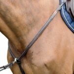 Um peitoral clássico com elástico. A gamarra bifurcada apresenta argolas em mosquetão (EVO).