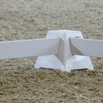 As pistas são compostas por cones e pranchas. Os cones são colocados no chão. As pranchas podem ser inseridas nos cones. Esta construção facilita a instalação e reinstalação rápida da pista. Os cones são projetados pela Heritage Products para serem altamente duráveis e de baixa manutenção. Além disso, estão equipados com espaços no interior para evitar que se colem quando empilhados. Esta característica única aumentou ainda mais a vida útil dos produtos. As pranchas da pista de dressage Heritage Products têm 4 metros de comprimento e não necessitam de qualquer reforço. Isso os torna leves e fáceis de manusear. A distância do cone de 4 metros também confere à arena uma aparência elegante e robusta.