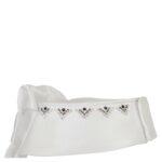 Os lindos brilhantes claros e escuros na gola e na parte superior central do plastron brilham à luz do sol. Os brilhantes no centro são colocados em um padrão em forma de diamante e na gola é decorado com diamantes em um padrão semelhante, apenas divididos pela metade.