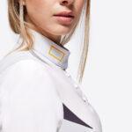 gola popeline com botões de pressão ocultos para manter a gola no lugar