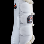 O protetor eKur de dressage adere perfeitamente à perna garantindo a máxima proteção às áreas mais vulneráveis a traumas e hematomas, deixando o boleto livre em seus movimentos.