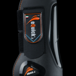 Protetor tendão em neopreno acopladas a Lycra, carapaça reforçada em TPU com tratamento exclusivo que as torna parecidas com couro, equipadas com duas tiras elásticas e velcro duplo.