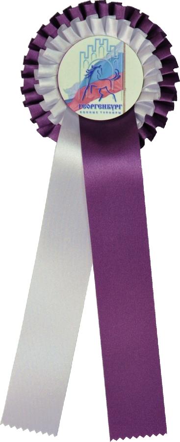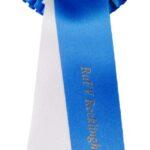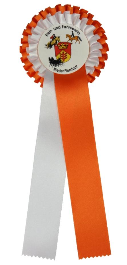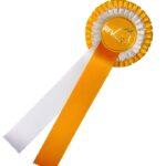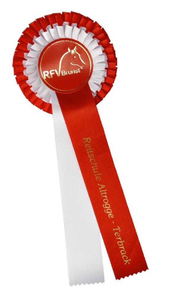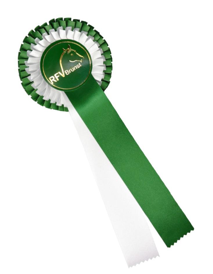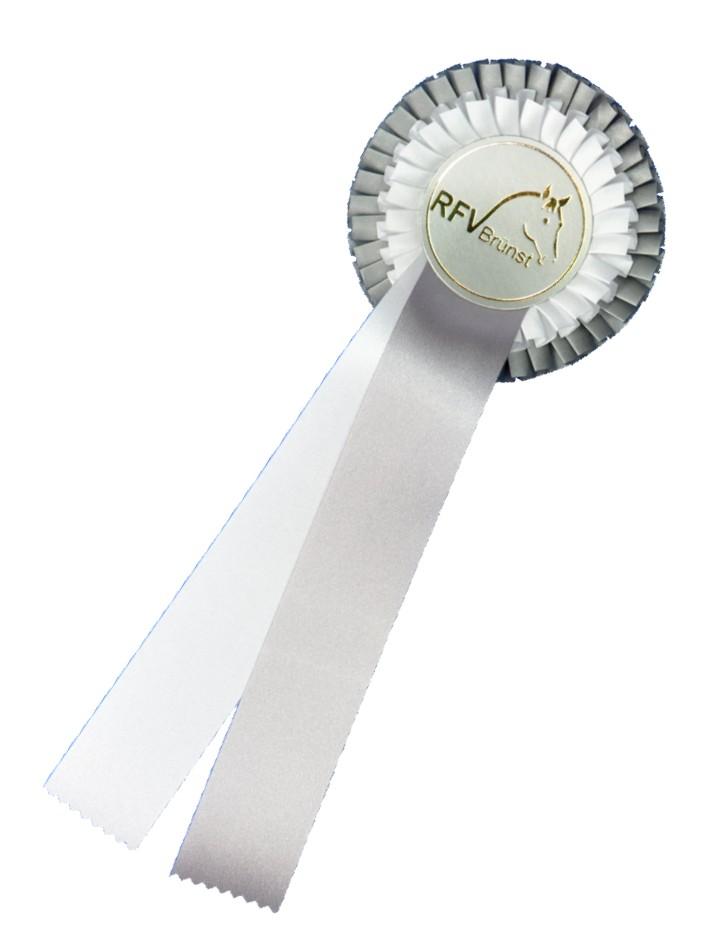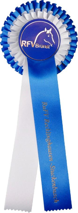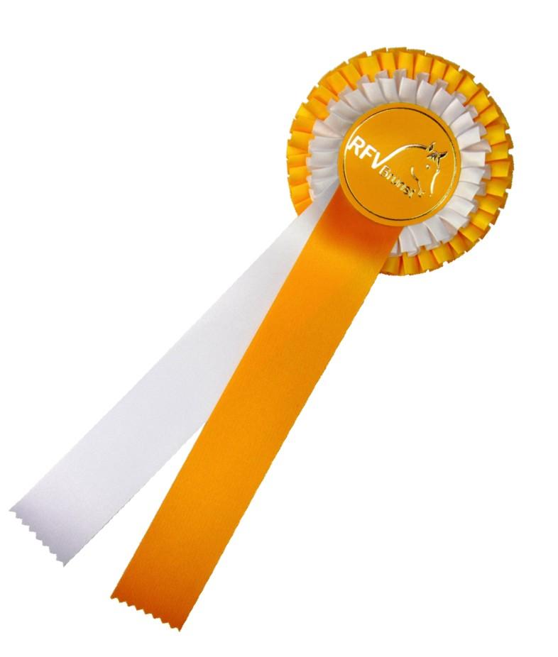 Pega dupla Regal em qualidade premium nas cores tradicionais de colocação, com um anel interior branco e duas fitas de 25 cm de comprimento. A fita da esquerda é branca e a da direita na cor de colocação. O terceiro lugar tem um anel interior azul e um anel exterior branco. Em alternativa, estão disponíveis duas fitas da mesma cor (branca ou azul) para o 3º e 4º lugares.