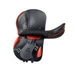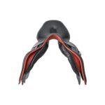 DESCRIÇÃO O grande furo oval no centro do assento proporciona maior conforto para o cavaleiro, ao mesmo tempo em que fornece ventilação para o dorso do cavalo. A versão de couro liso tem furos e aberturas nas abas e sob as abas que tornam a sela mais leve. A sensação típica desses cavalos com garupa alta pode ser completamente evitada com esta sela.   LINHA PREMIUM