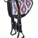 Suadouro com loros e estribos fixos. Fornecido com a cilha. Argola adicional para os loros somente no tamanho Shetland.