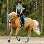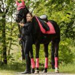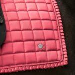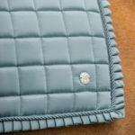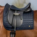 Suadouro elegante em cetim, com debrum franzido. O deslizamento do selim é evitado com a ajuda da almofada de parada e do laço de cinta simples ou subdividido. O forro de bambu absorvente de suor oferece um grau particular de conforto.