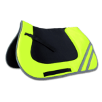 O material externo amarelo neon, suavemente acolchoado com forro sensível à pele, oferece maior segurança para o cavalo e o cavaleiro. O suadouro é finalizado com uma fita refletora à sua volta e duas faixas refletoras em ambos os lados.