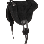 Suadouro de formato anatómico que proporciona uma fixação particularmente boa com sua superfície de camurça e sua alça de couro. O enchimento de espuma espessa é estável sob pressão e absorve choques, ao mesmo tempo que tem um efeito antiderrapante. O amortecimento macio e o espaço para o garrote tornam o suadouro muito confortável para o dorso do cavalo.