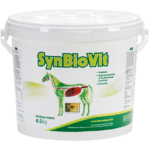 SYNBIOVIT é um alimento complementar para cavalos contendo levedura viva Saccharomyces Cerevisie, probióticos e vitaminas do complexo B.