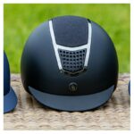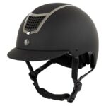 O capacete de equitação BR Lambda destaca-se pelo top glitter e pelas práticas aberturas de ventilação.