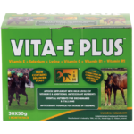 VITA-E-PLUS é um alimento complementar para cavalos que contém Vitaminas E e C e Selénio que têm um papel na prevenção da oxidação celular. Ele também contém vitamina B1 e B2, que são importantes para o metabolismo geral, e lisina, que é importante para a síntese de proteínas.