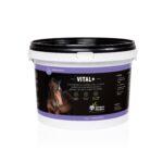 de osso e cartilagem. A presença de biotina vai melhorar a qualidade da pelagem e dos cascos. Além disso, as vitaminas C, E e as vitaminas B necessárias no Vital+ vão aumentar a resistência e a vitalidade. Este produto também contém eletrólitos que tanto os cavalos de desporto como os de recreio necessitam durante o esforço físico.